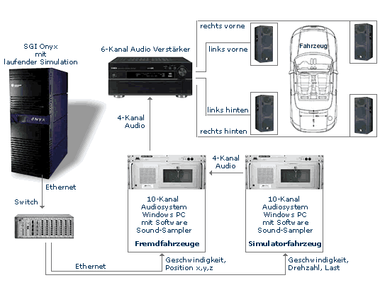 Abroll-, Brems- und Fremdfahrzeuggeräuschsimulation entwickelt.